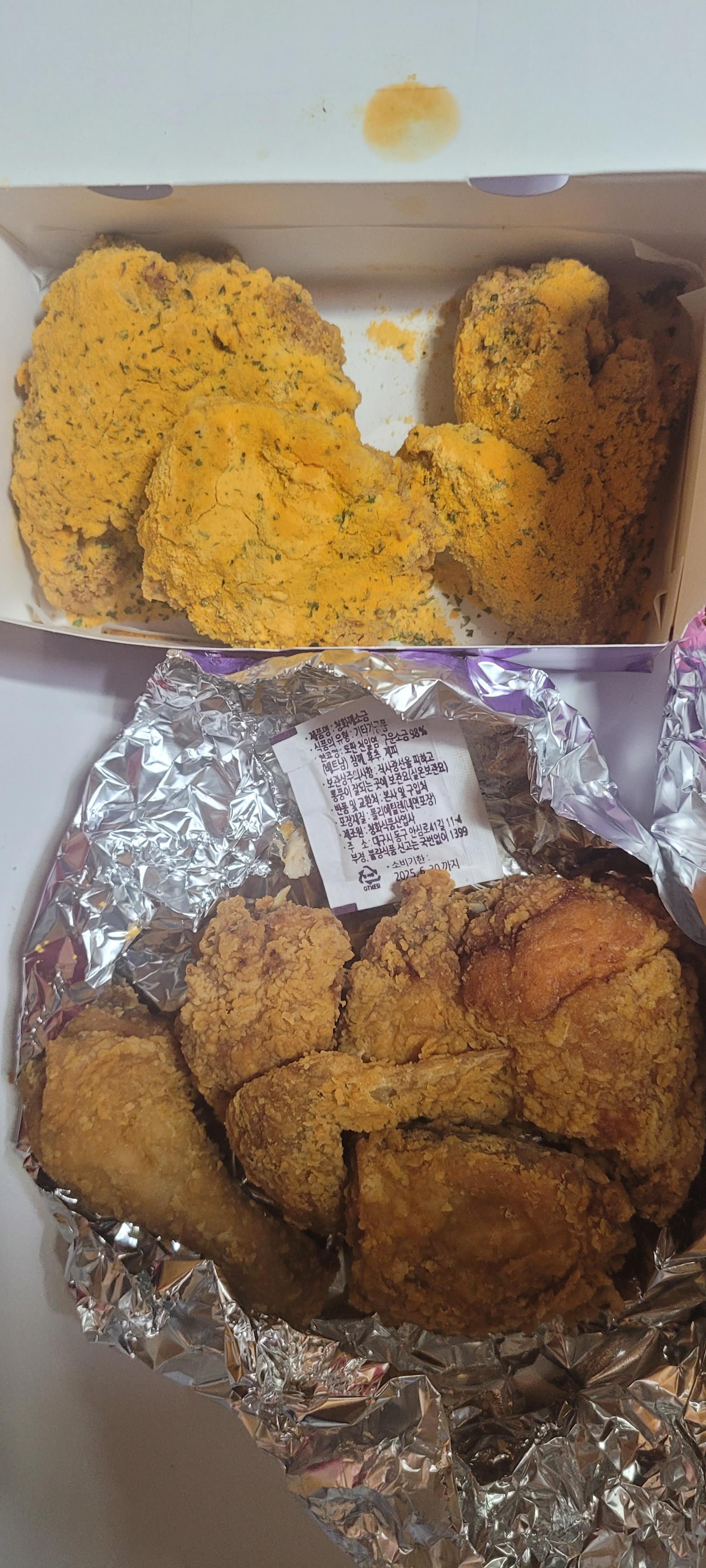 부어치킨 3가지맛은 각각 반마리씩