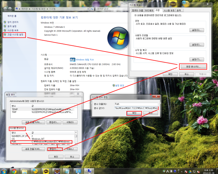 거기에 들어가면 아래쪽 시스템변수가 보이는데요...