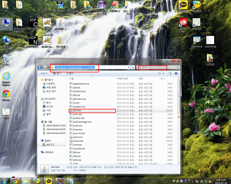 먼저 jdk폴더 즉 java.exe가 있는 폴더를 찾아 갑니다~~